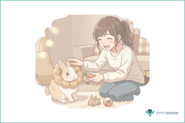 そして最も危険なNG行動が「放置する」ことです。「明日になったら良くなるかも」「週末まで待って様子を見よう」という判断が、ウサギの命を奪うことがあります。うっ滞は数時間単位で悪化する病気です。少しでも異変を感じたら、最低限の自宅ケアをしながら動物病院に相談し、必要なら今日中に受診する、という姿勢を持ってください。