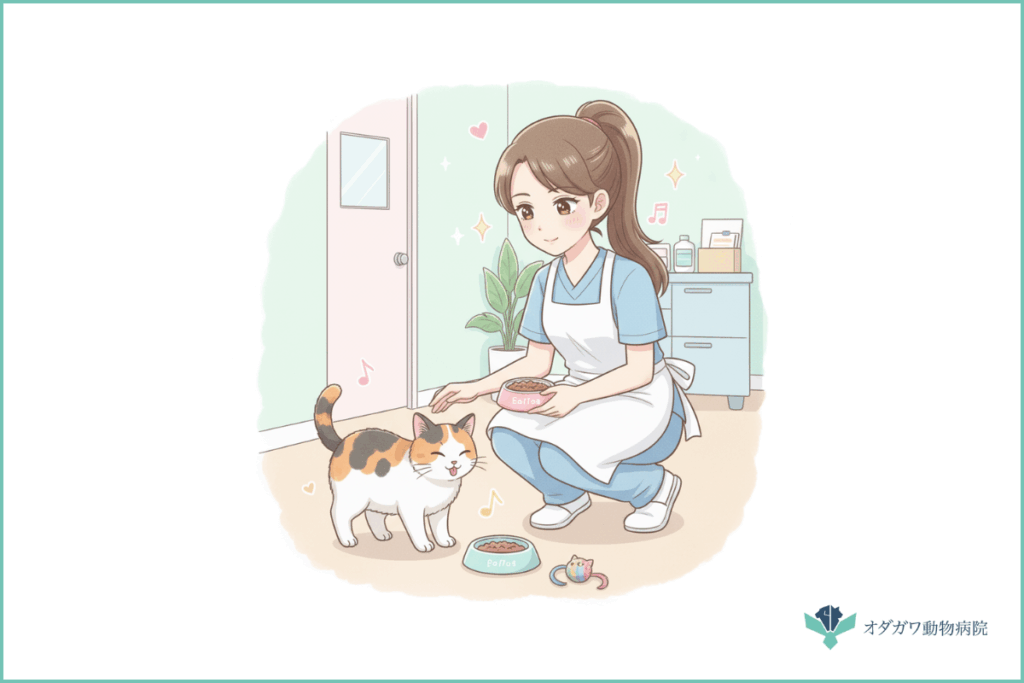 栄養バランスの良い高齢猫用フードを与え、免疫力を維持しましょう。水分摂取も意識的に促します。