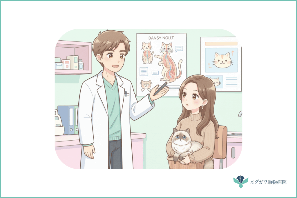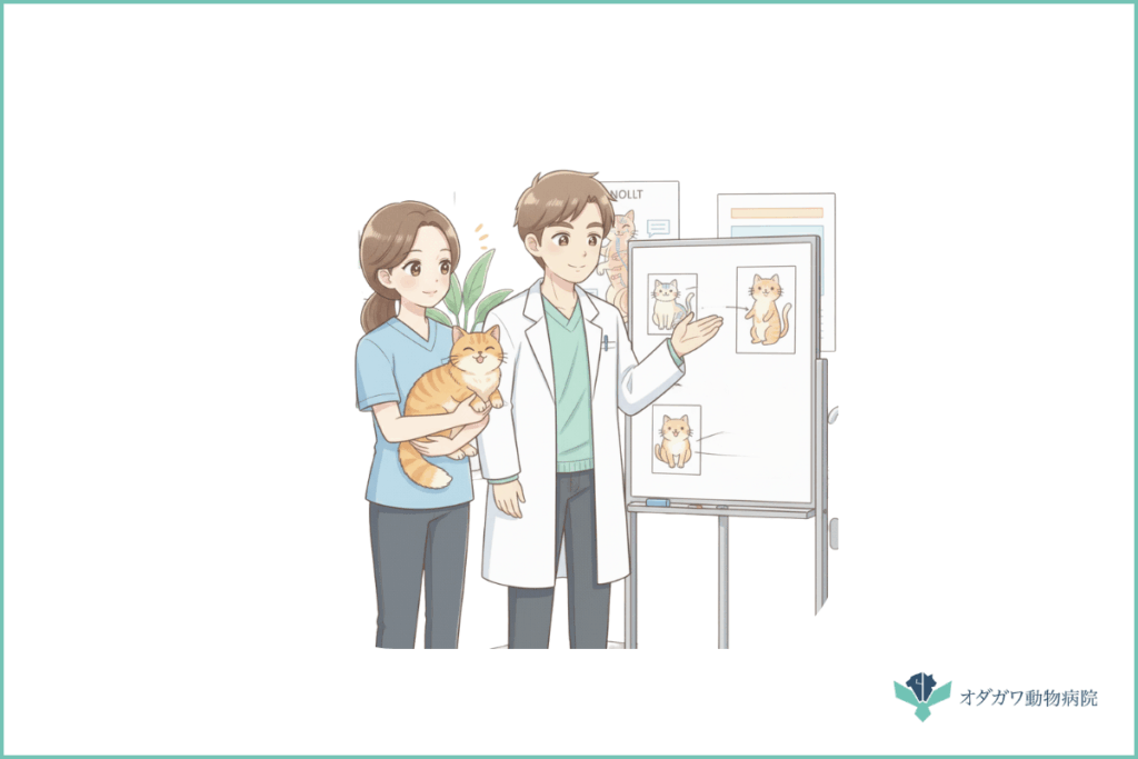 健康そうに見えても、年に1〜2回は動物病院で健康診断を受けることをおすすめします。若い猫は年1回、7歳以上のシニア猫は年2回が目安です。