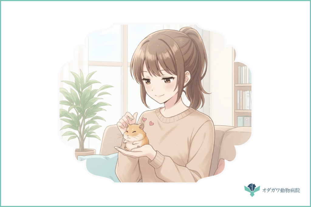 ハムスターは体が小さく病気の進行が早い動物だからこそ、小さなサインを見逃さないことが最大の予防となります。「いつもと少し違う」という飼い主様の直感は、多くの場合正しいものです。食欲、水の飲み方、うんちの状態、毛並み、活動量、呼吸の様子など、日々の観察を通じて「いつもの状態」を把握しておくことで、異変に素早く気づくことができます。