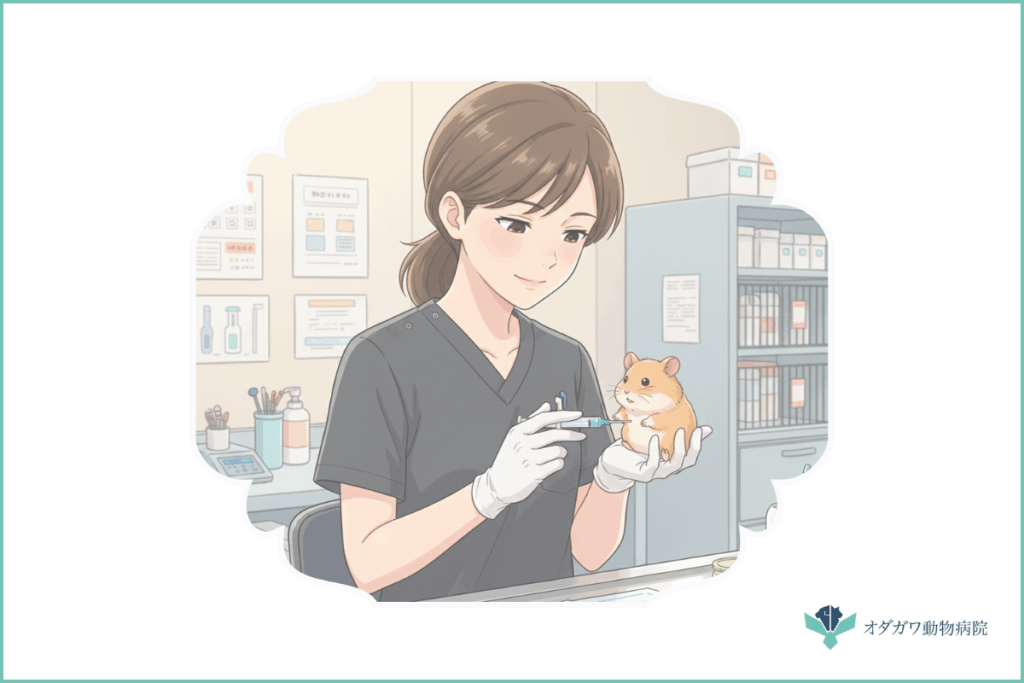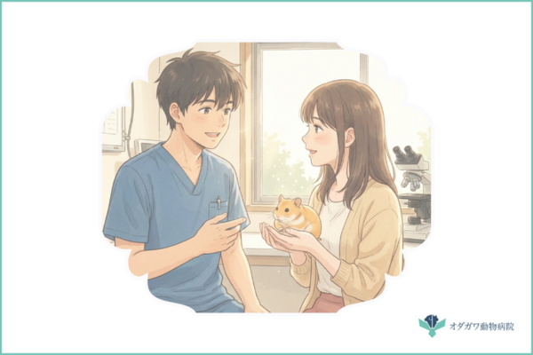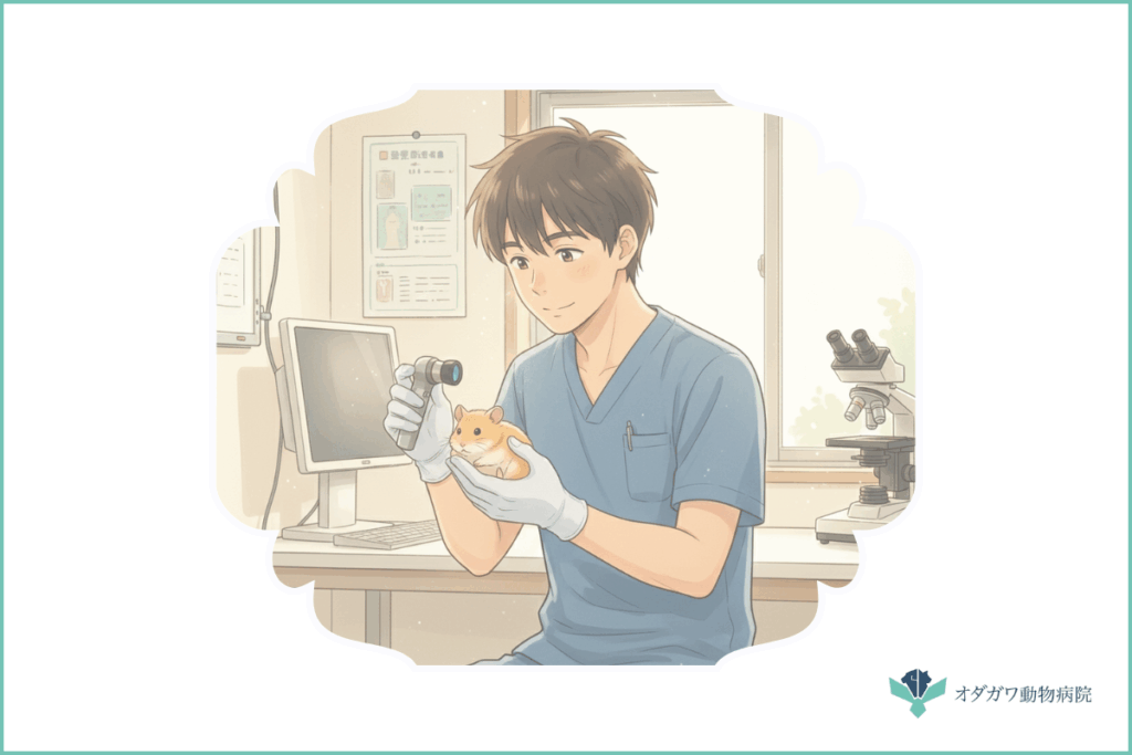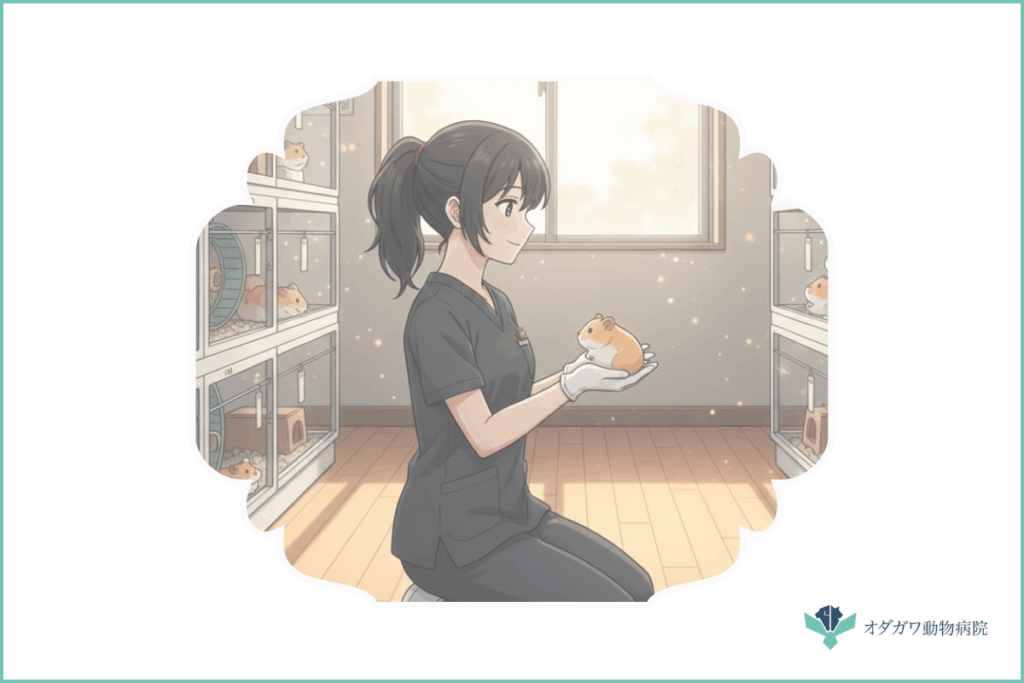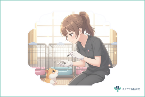 当院ではハムスターの診療に対応しています。症状が心配な場合は、こちらをご覧ください。