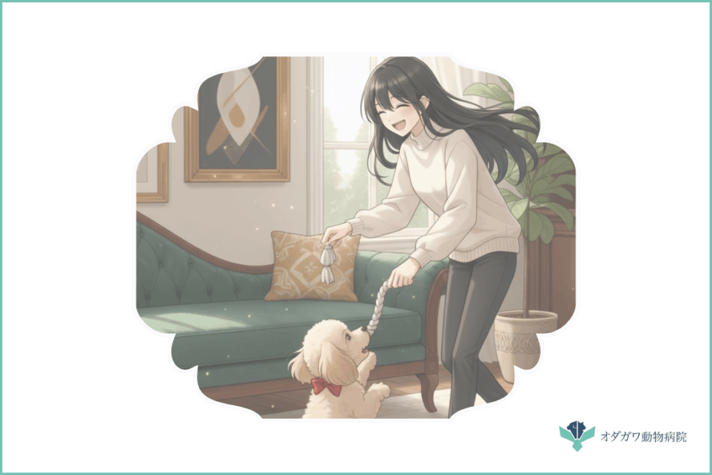 静かで落ち着いた環境を用意してあげることも大切です。騒がしい場所や、家族の往来が多い場所ではなく、静かで温度が安定している場所に寝床を準備してください。ただし、完全に隔離すると犬が不安を感じることもあるので、飼い主の存在を感じられる距離感を保つことが理想的です。