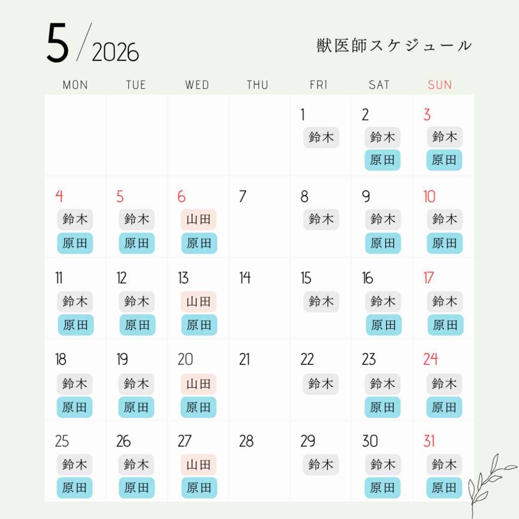 2026年5月 獣医師出勤スケジュールのお知らせ
