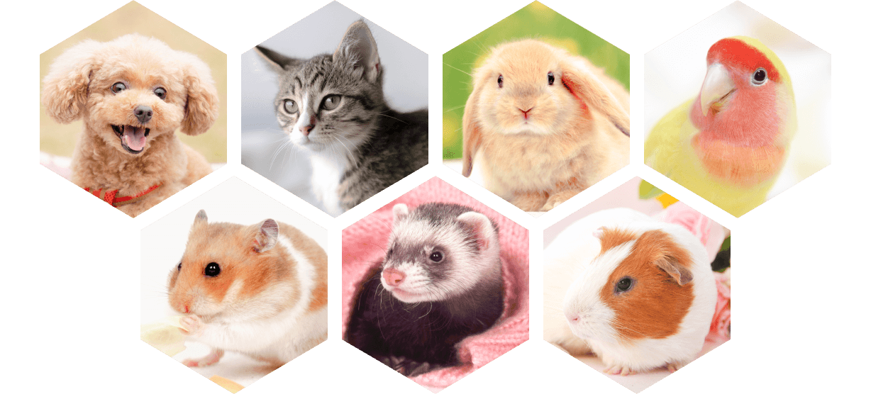 当院では、犬、猫、小鳥、うさぎ、ハムスター、フェレット、モルモットの診療を行っています。